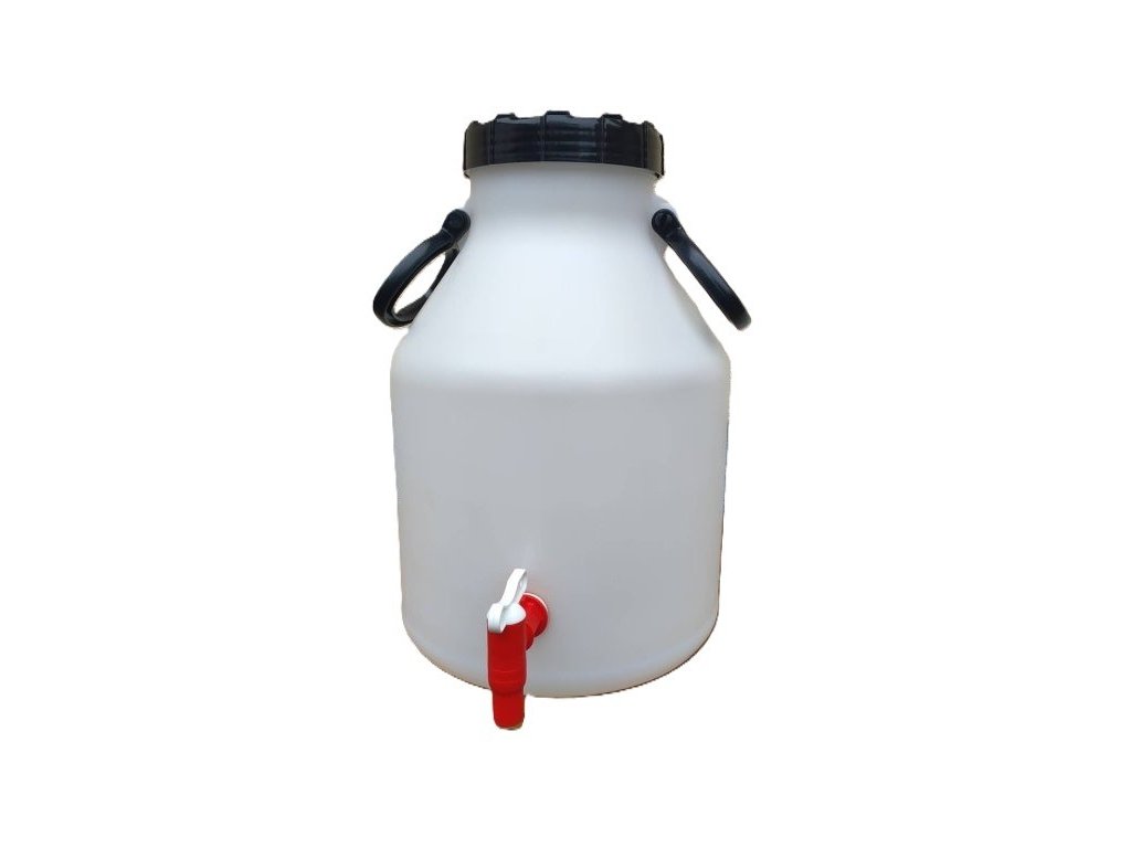 Barel s praktickým úchopem, šroubovacím víkem a kohoutem, využitelný na tábor jako konev či kanystr na vodu nebo pití. Je hygienicky nezávadný, splňující podmínky pro styk s potravinami.