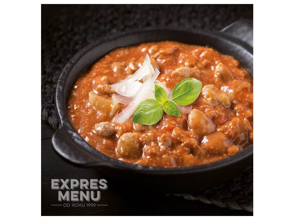 Tradiční italská omáčka z mletého hovězího, šťavnatých rajčátek, kořenové zeleniny a bylinek s vůní Středomoří.