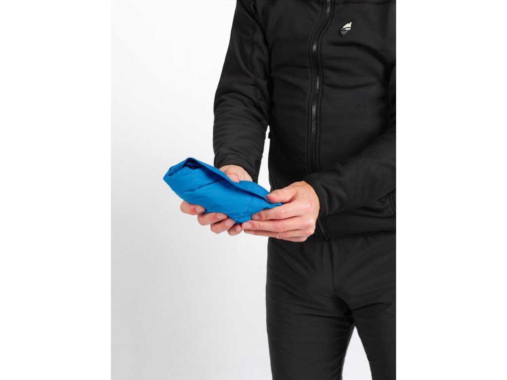 Přestože je důraz kladen na minimální hmotnost a objem, bunda nabízí vše podstatné pro funkční outdoorové použití – integrovanou kapuci, nastavitelné manžety, voděodolný zip a výrazné reflexní prvky pro vyšší bezpečnost při snížené viditelnosti.