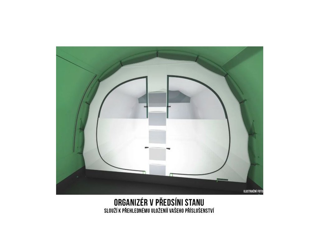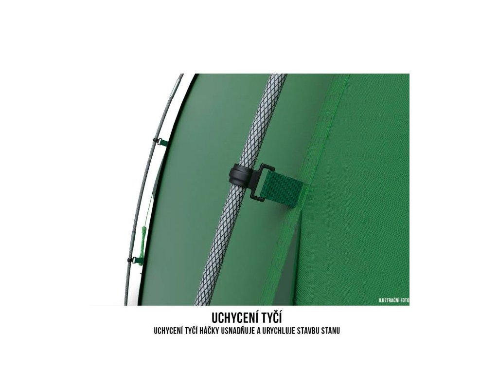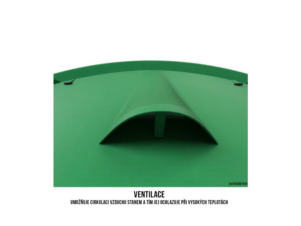 - Vysokou odolnost proti vnějším vlivům, prodyšnost a pohodlí zaručují kvalitní materiály, z nichž je stan vyroben.