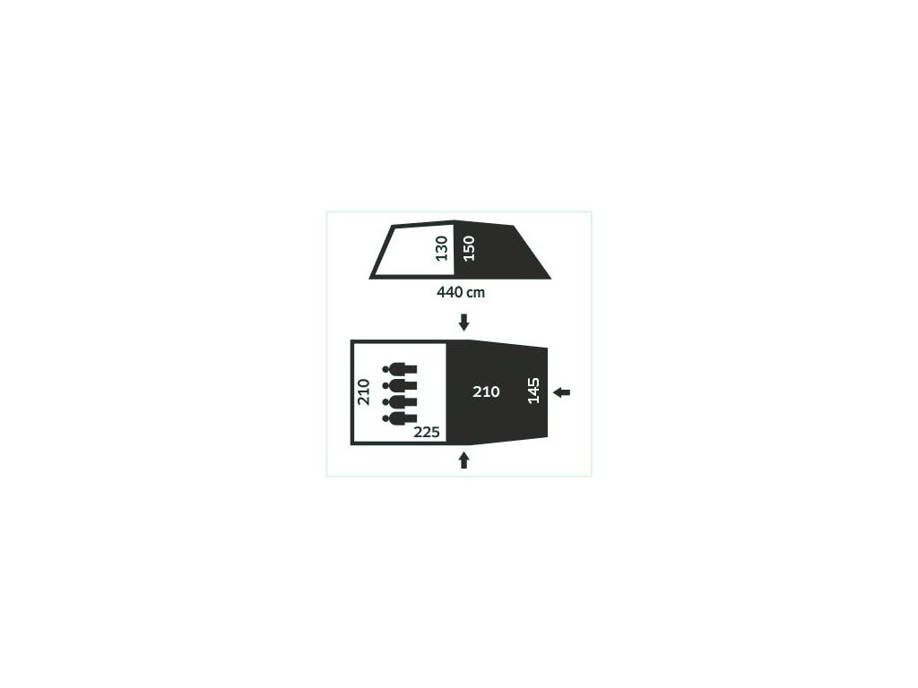 Jedná se o větší kempingový stan tunelového typu. Ložnice je určená pro 4 osoby.