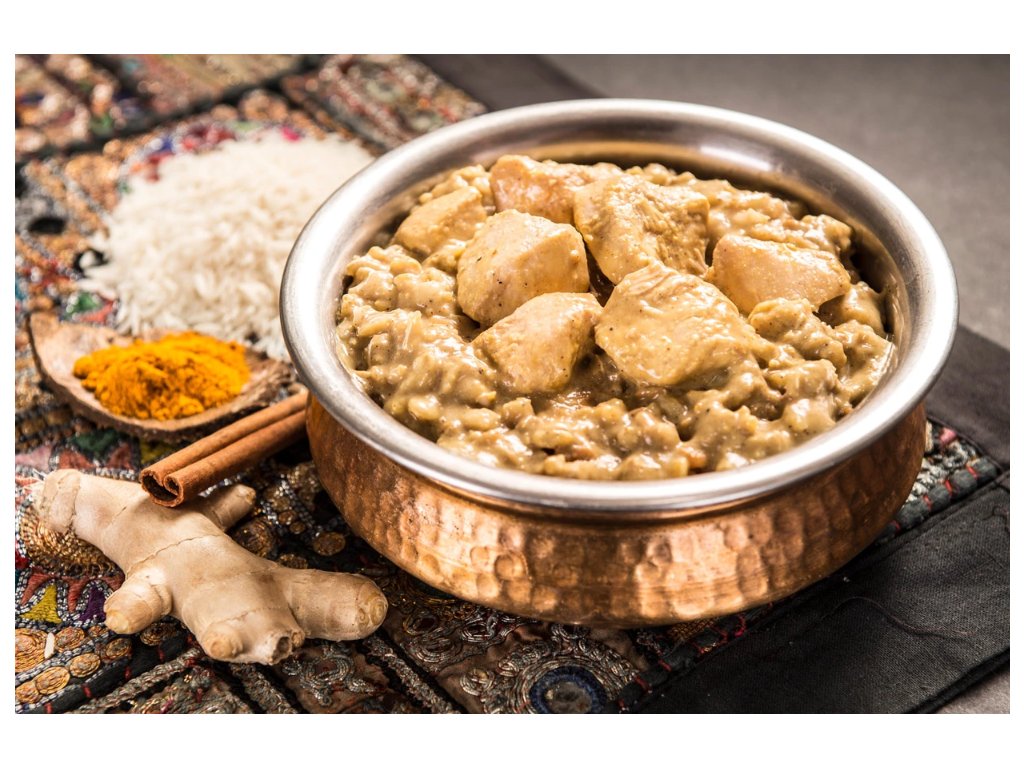 Kuřecí prsní kousky v omáčce s kokosovým mlékem, smetanou a kořením Garam masala přímo z dálného východu.