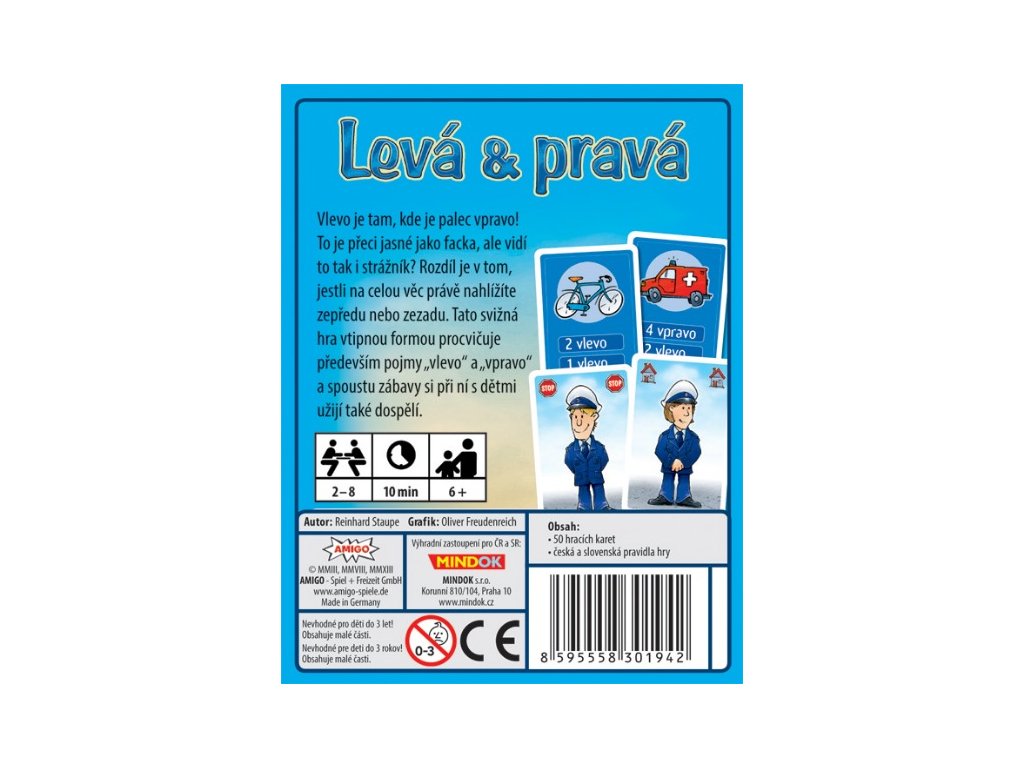 Díky této hře se děti i dospělí zábavnou formou naučí lépe rozlišovat levou a pravou stranu. Zní to jednoduše – ale co když se na situaci díváte zezadu, jako strážník na kartě? Najednou to, co bylo vpravo, může být vlevo.
