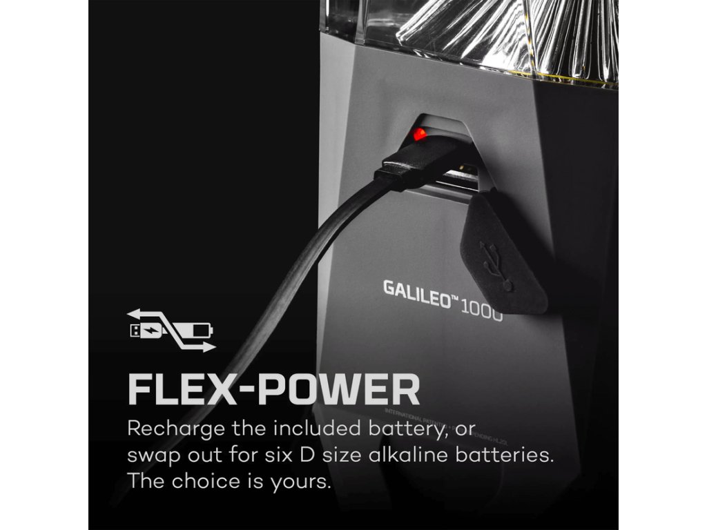 Svítilna Galileo ™ 1000 FLEX od společnosti NEBO je dobíjecí svítilna o objemu 1 000 lumenů s 5 světelnými režimy s výstupním konektorem USB A pro napájení nebo nabíjení většiny zařízení USB. Součástí balení je rukojeť ve stylu karabiny pro pohodlné a bezpečné nošení.