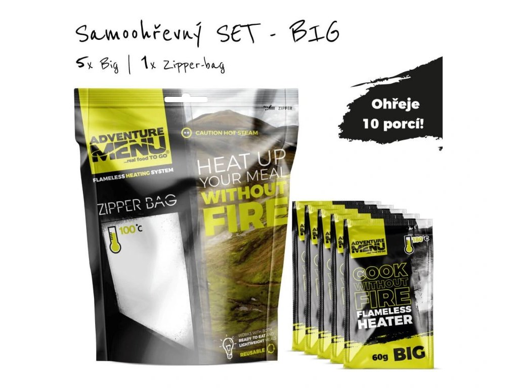 Tento set obsahuje vše potřebné k ohřátí až 10 porcí jídel: 5x 60g samoohřevná kapsle, 1x sáček Zipper bag.