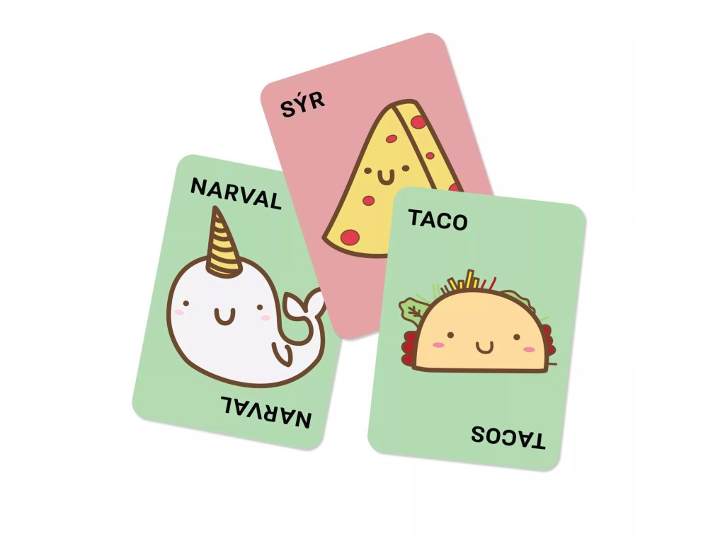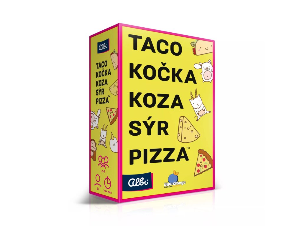 Taco, kočka, koza, sýr, pizza je svižná postřehová karetní hra, při které neustále opakujete pět slov, ale pozor, nesmíte polevit v pozornosti! Jakmile se vyslovené slovo shoduje s právě otočenou kartou, musíte ji rychle zaplácnout a to dříve než váspředběhnou soupeři.
