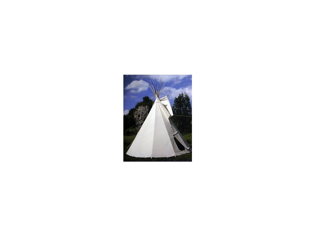 - Při první úvaze o táboření v týpí doporučujeme si kruh takové velikosti pro představu nakreslit a počítat s tím, že pro obývání není možné plochu využít až k okraji základny, neboť tu svoji roli hraje svažování plachty. Tyto okraje jsou vhodné pro odkládání věcí.