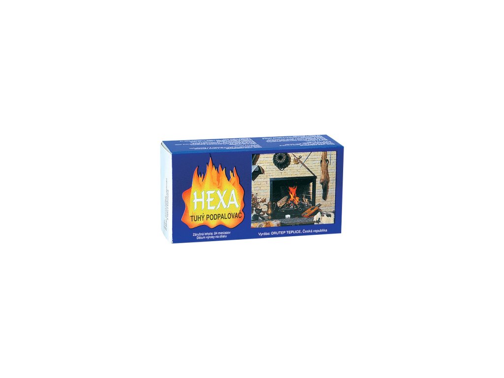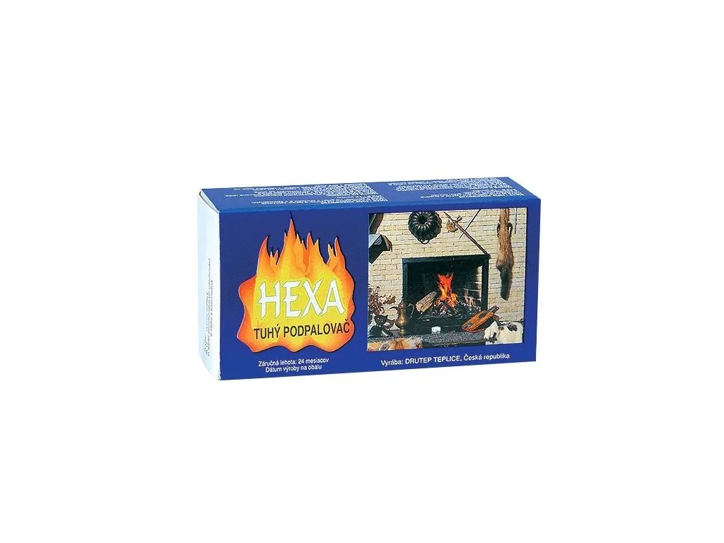 Hexa je tuhé palivo pro rychlé a snadné založení ohně v krbu, grilu, ohništi a vařiči na tuhý líh. Používá se k vaření v přírodě, k podpalu kamen, krbů a grilů, k rozdělávání ohně, nahrazuje třísky. 16 tablet vystačí pro 8 až 12 použití.