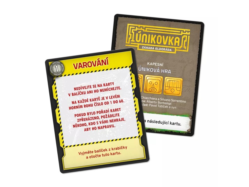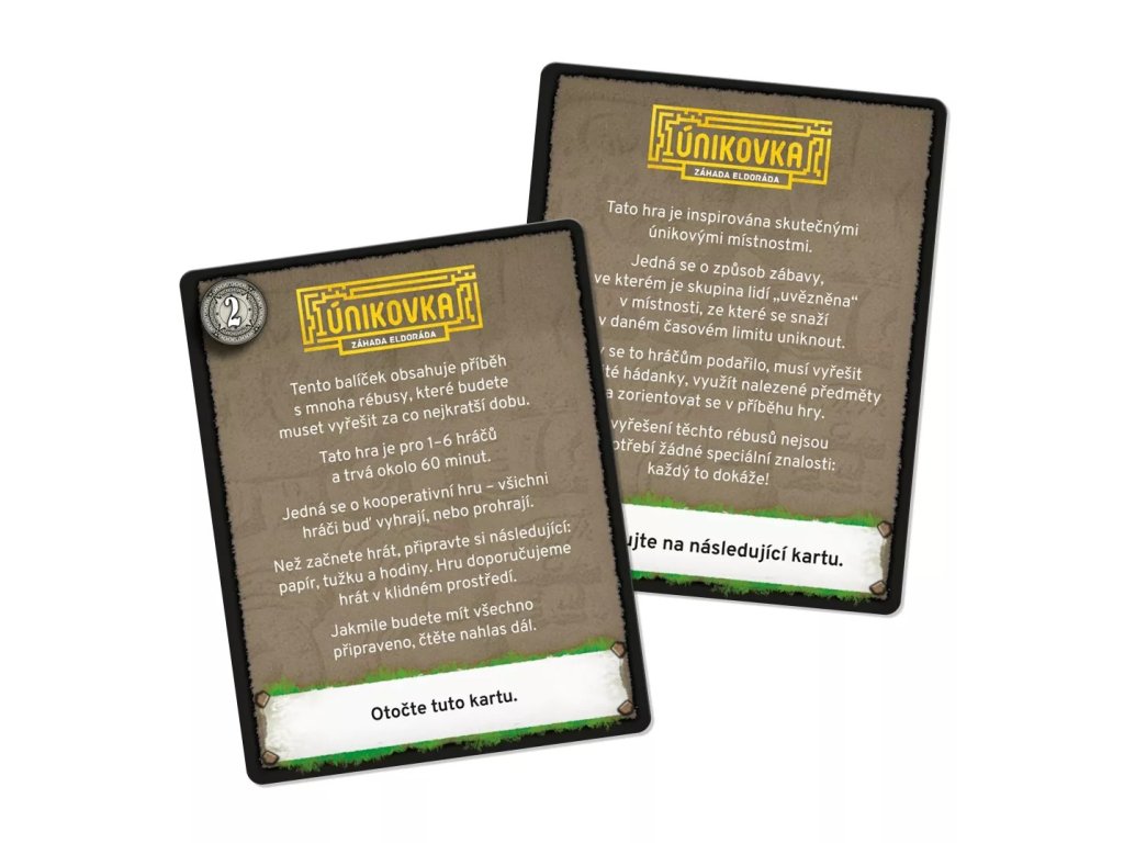 Karetní únikovka je hra plná hádanek a rébusů, kterou může hrát jeden hráč nebo skupina. Inspirována klasickými únikovými místnostmi, kde se snažíte v časovém limitu vyřešit sérii úkolů a „uniknout“, přenáší podobný zážitek ke stolu – pomocí karet, bez nutnosti speciálního prostoru. Hráči postupně odhalují karty s novými úkoly, nápovědami i předměty a společně (nebo sami) se snaží dojít až do konce.