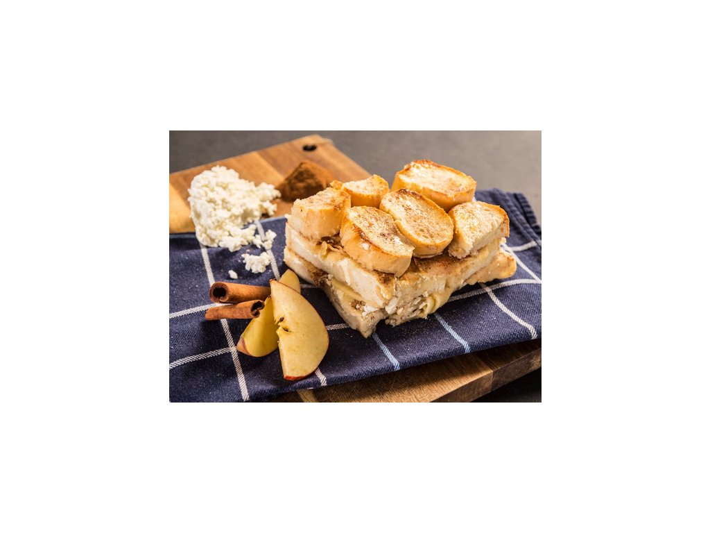 Složení: veka (25%) (mouka pšeničná, voda, olej řepkový, droždí, sůl, cukr), jablka (22%), mléko, tvaroh, cukr řepný, vejce, máslo, sůl,skořice (0,01%).